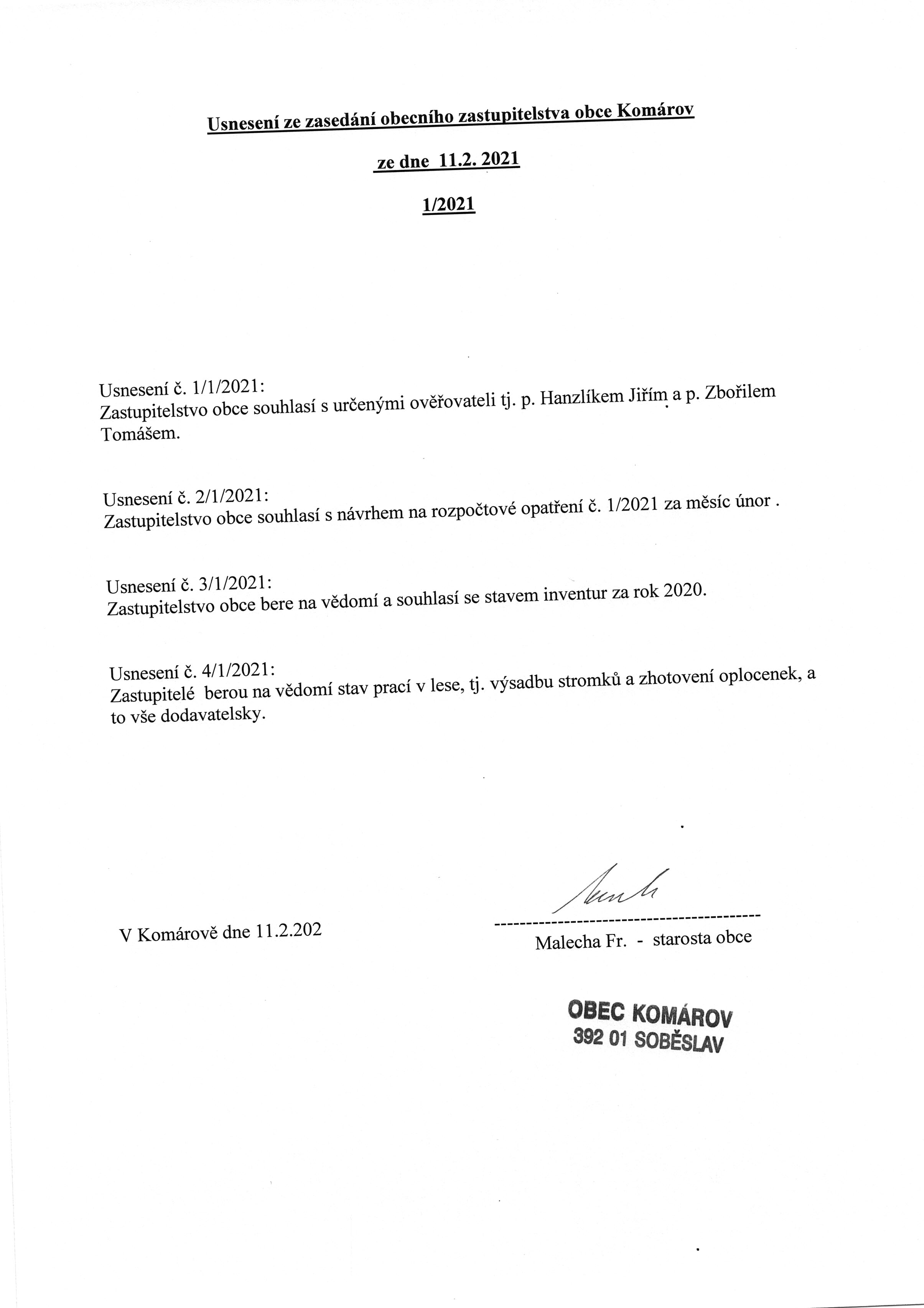 Usnesení č. 1/2021