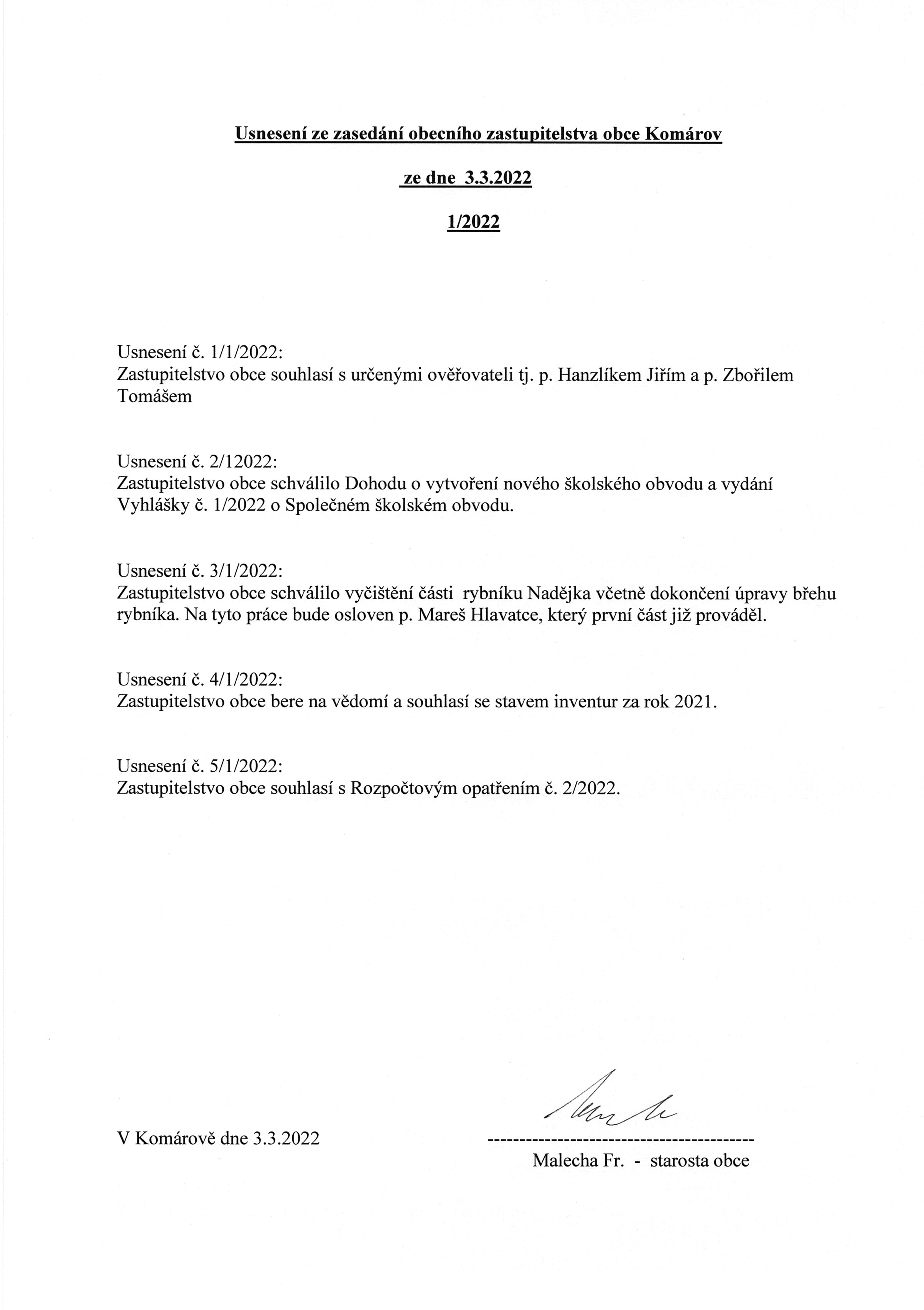 Usnesení č. 1/2022