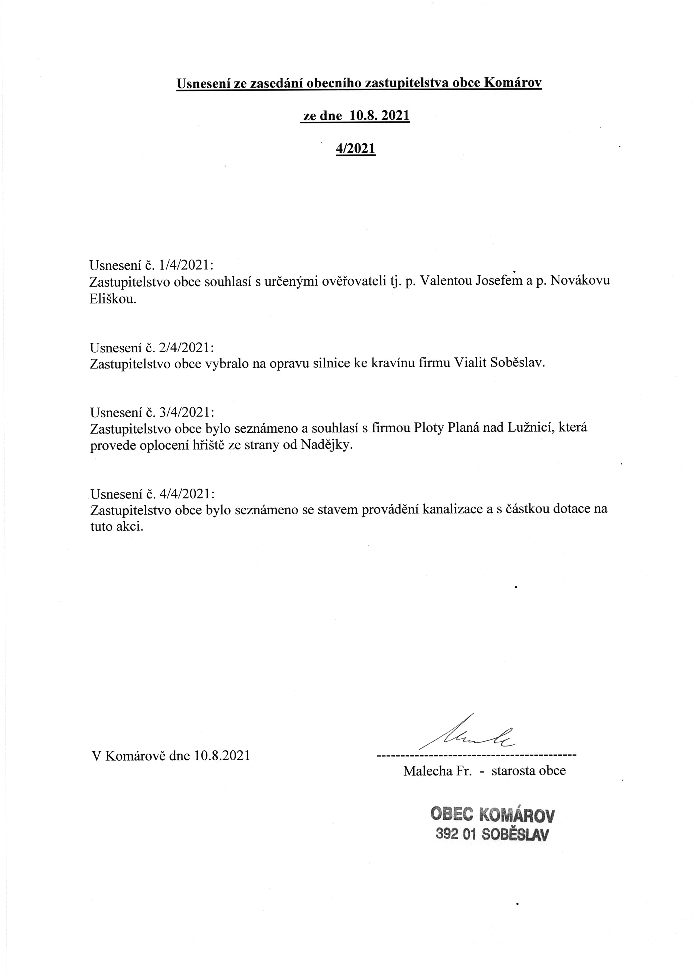 Usnesení č. 4/2021