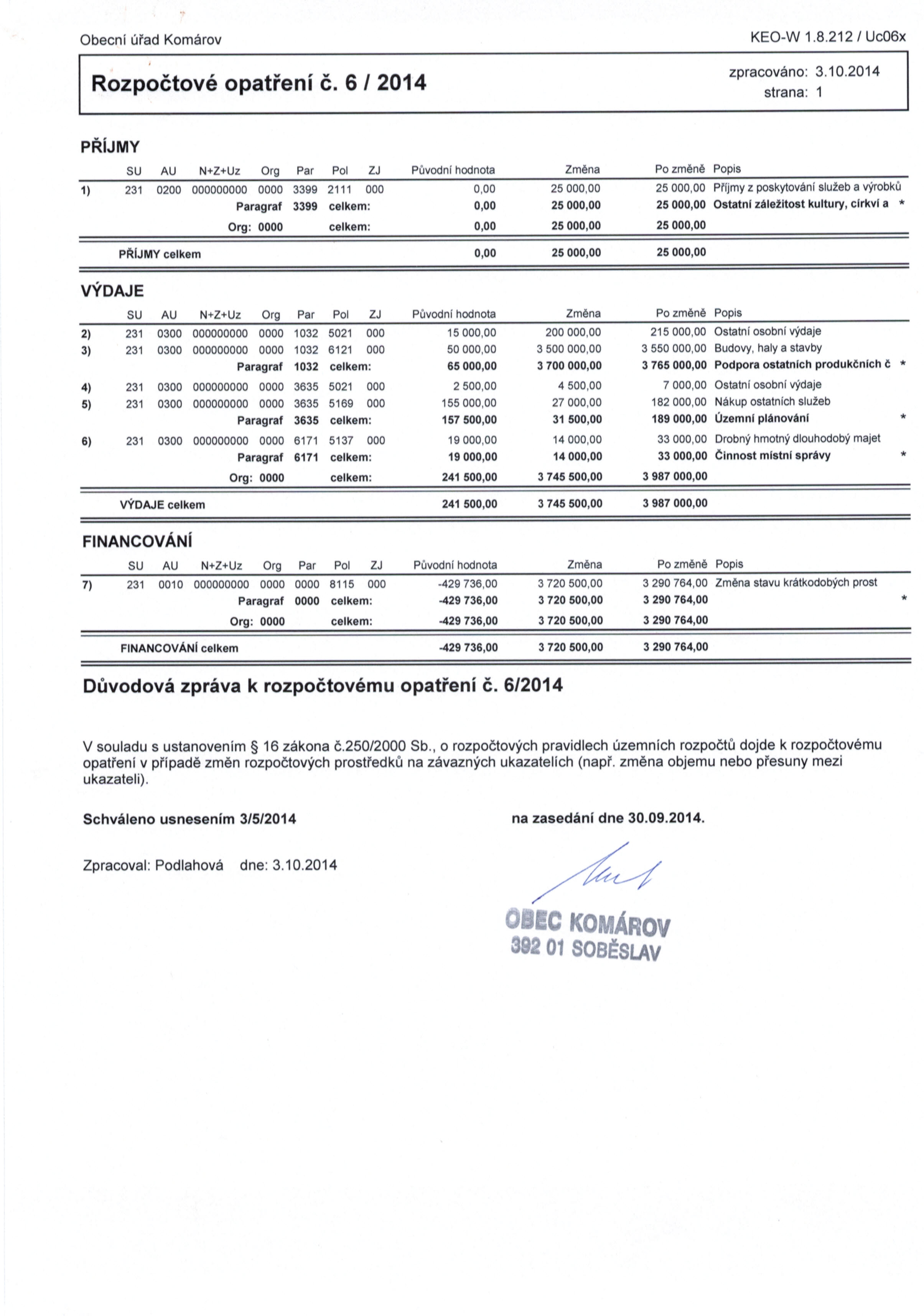 Veřejná vyhláška návrhu změny č. 1 územního plánu Komárov.