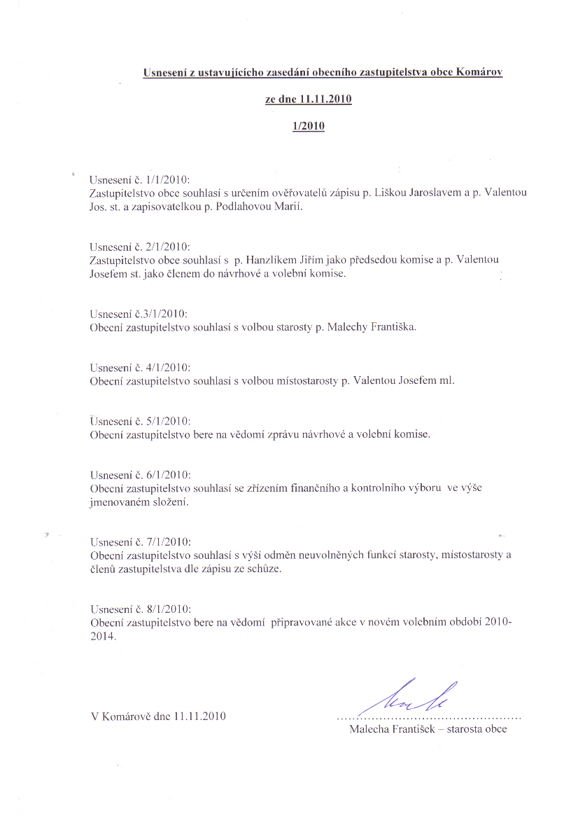 Usnesení 1/2010 - ustavující