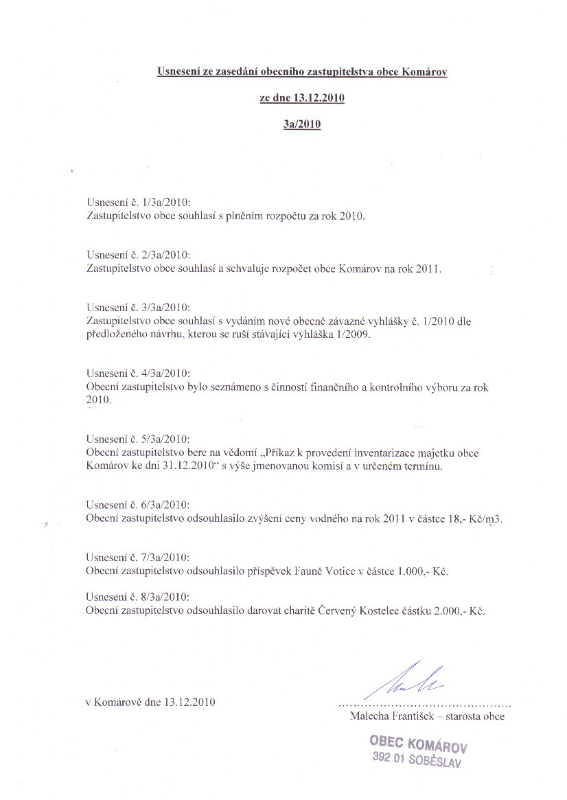 Usnesení 3a/2010