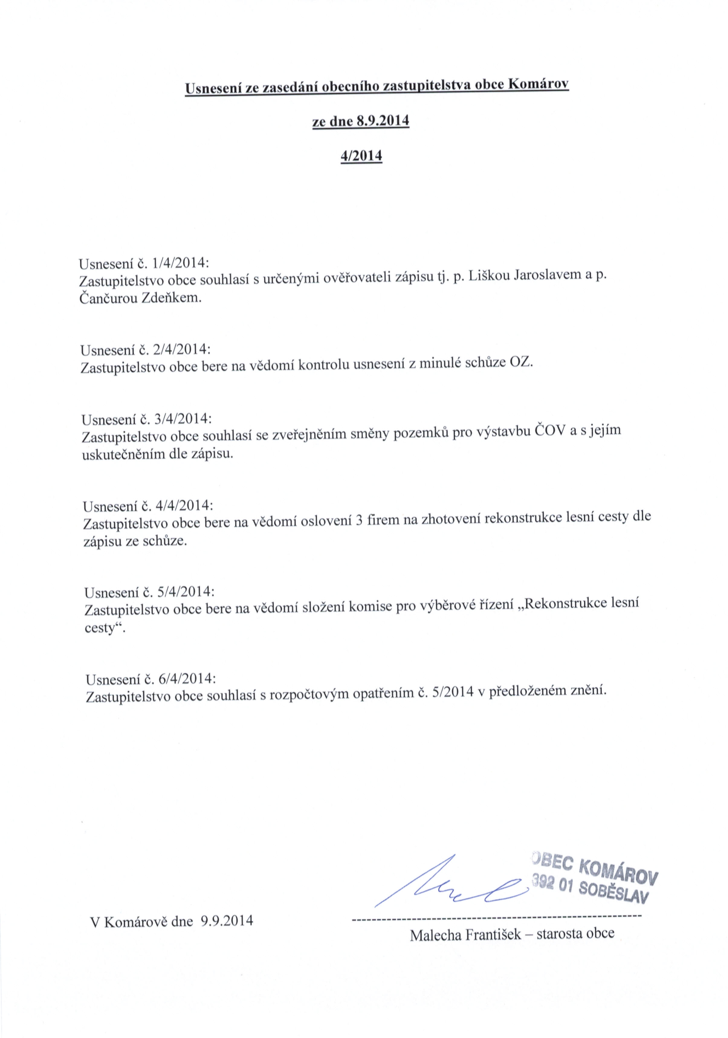 Usnesení č. 4/2014