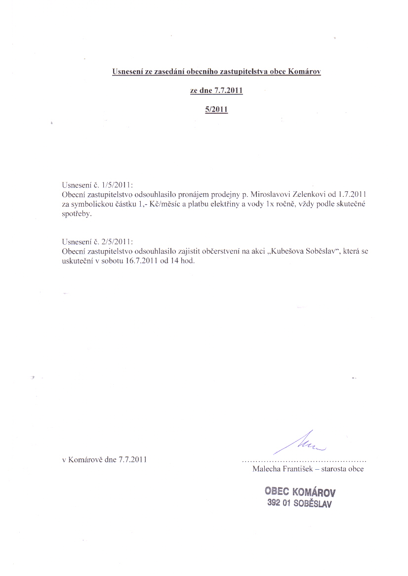 Usnessení 5/2011