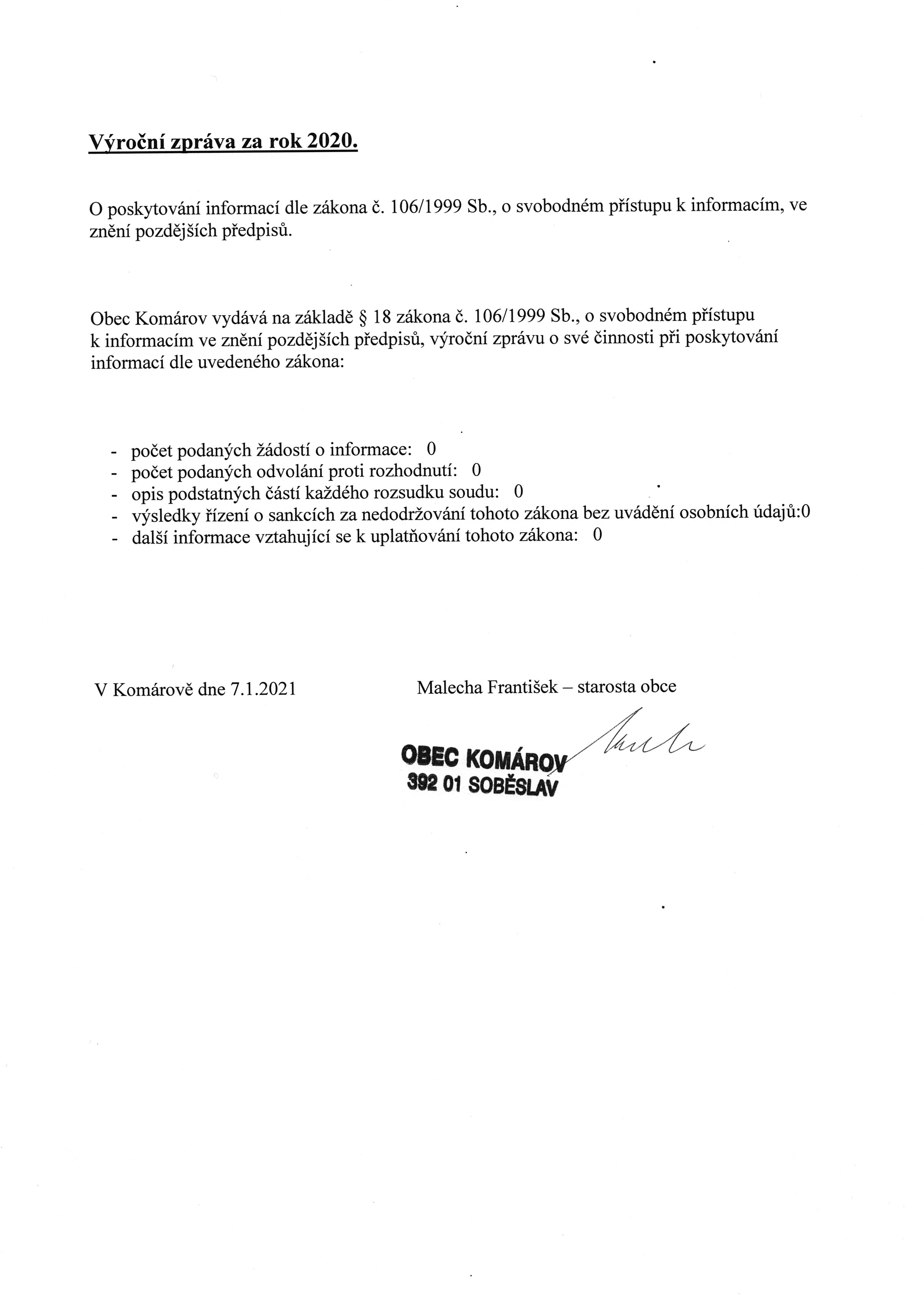 Výroční zpráva za rok 2020.